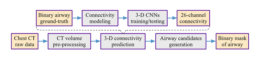 - 体素的连接性通过真实值经过CNN学习得到,学习中心像素是否为气道和邻域是否为气道