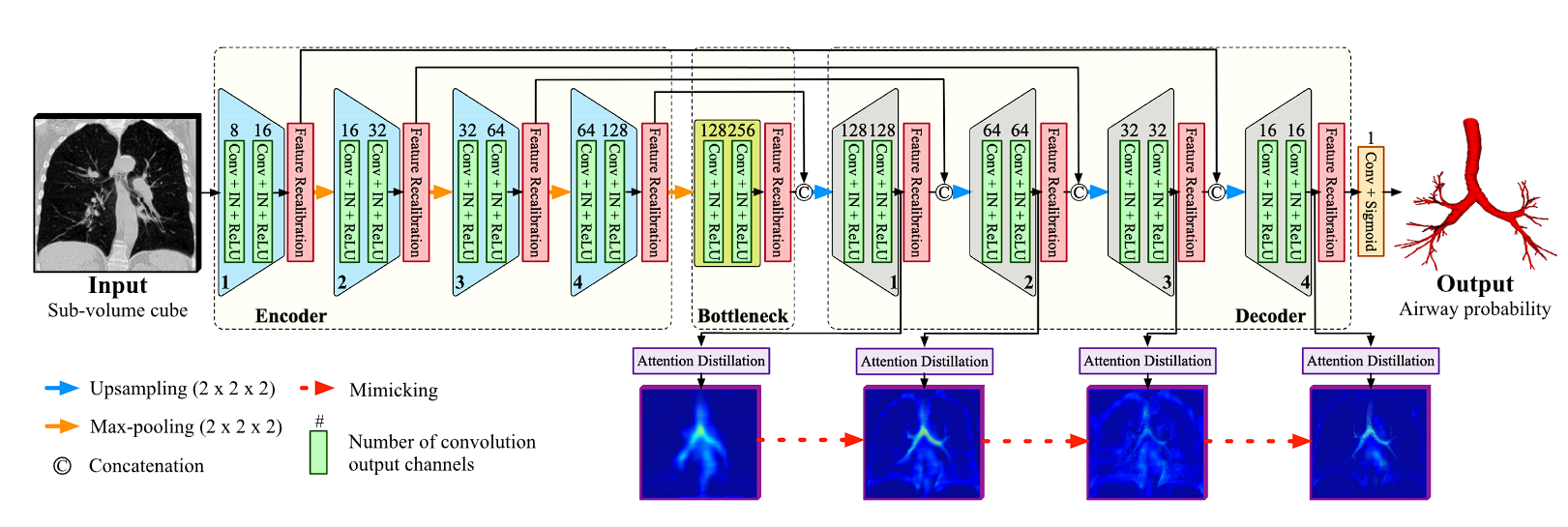Learning Bronchiole-Sensitive Airway Segmentation CNNs by Feature Recalibration and Attention Distillation