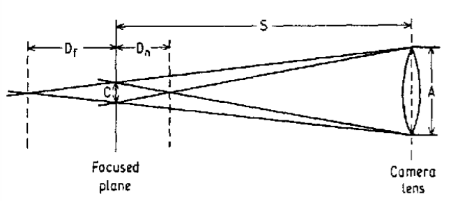 其中\(D_n,D_f\)分别是近景深和远景深,也就是在这个范围内的物体能够清晰成像