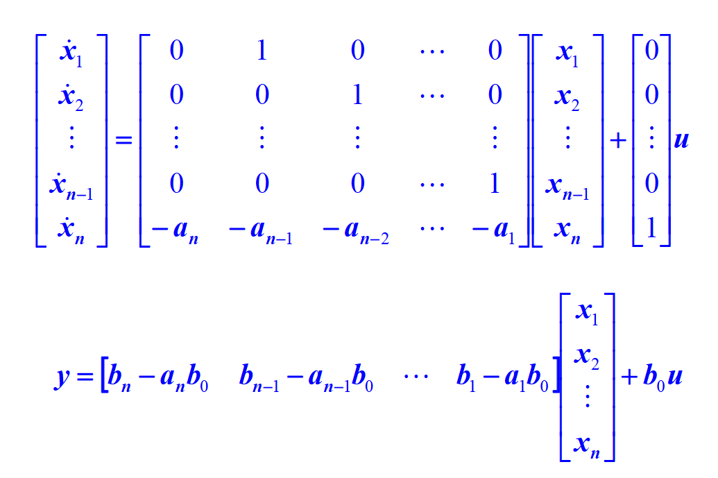 G = \frac{Y}{U} = \frac{b_0s^n+b_1s^{n-1}+\ldots+b_{n-1}s+b_n}{s^{n}+a_1s^{n-1}+\ldots+a_{n-1}s+a_n}