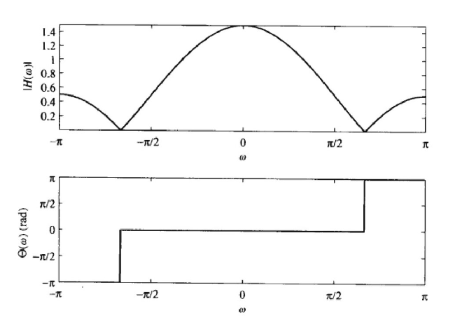 那么\(H(\omega)=\frac{1}{3}(1+2\cos(\omega)),|H|=|H(\omega)|\)(这里是绝对值),\(\angle H = \angle(1+2\cos(\omega))\)(注意正负)