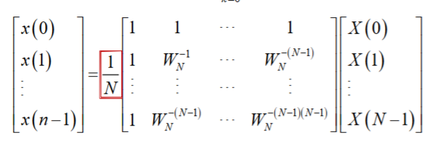 x(n)=\frac{1}{N}\sum_{k=0}^{N-1}X(k)W_N^{-nk}