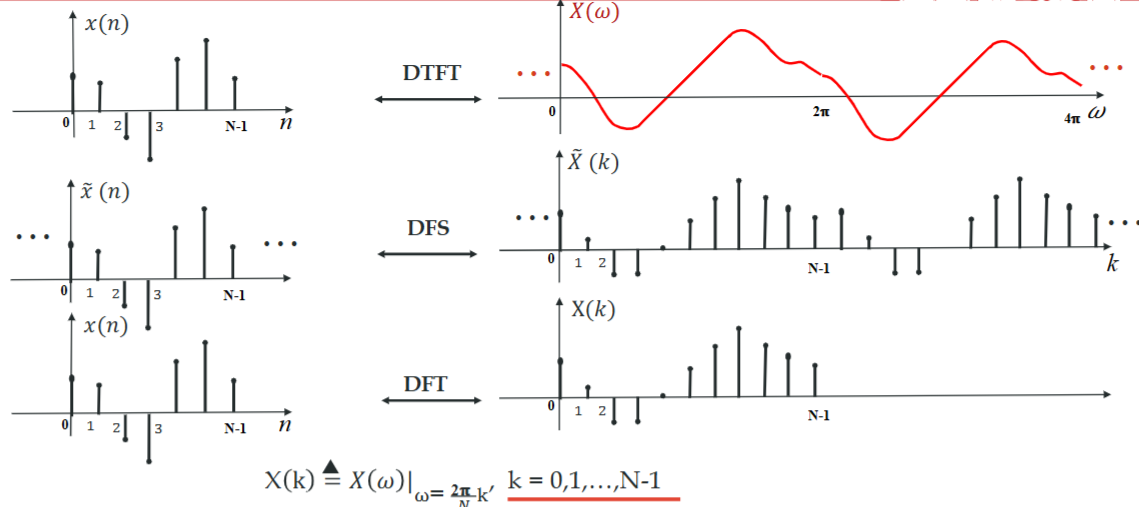 DFT表现为对\(X(\omega)\)进行抽样,表达为