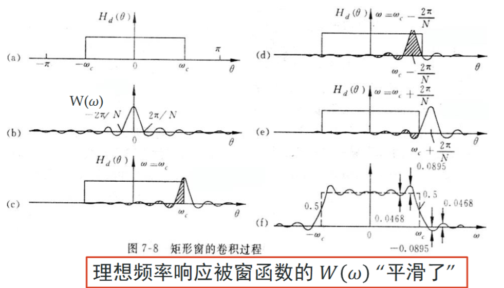 对\(h_d(n)\)做DFT/FFT,得到的就是\(H_d(\omega) = \frac{1}{2\pi}(H(\omega)*W(\omega))\)