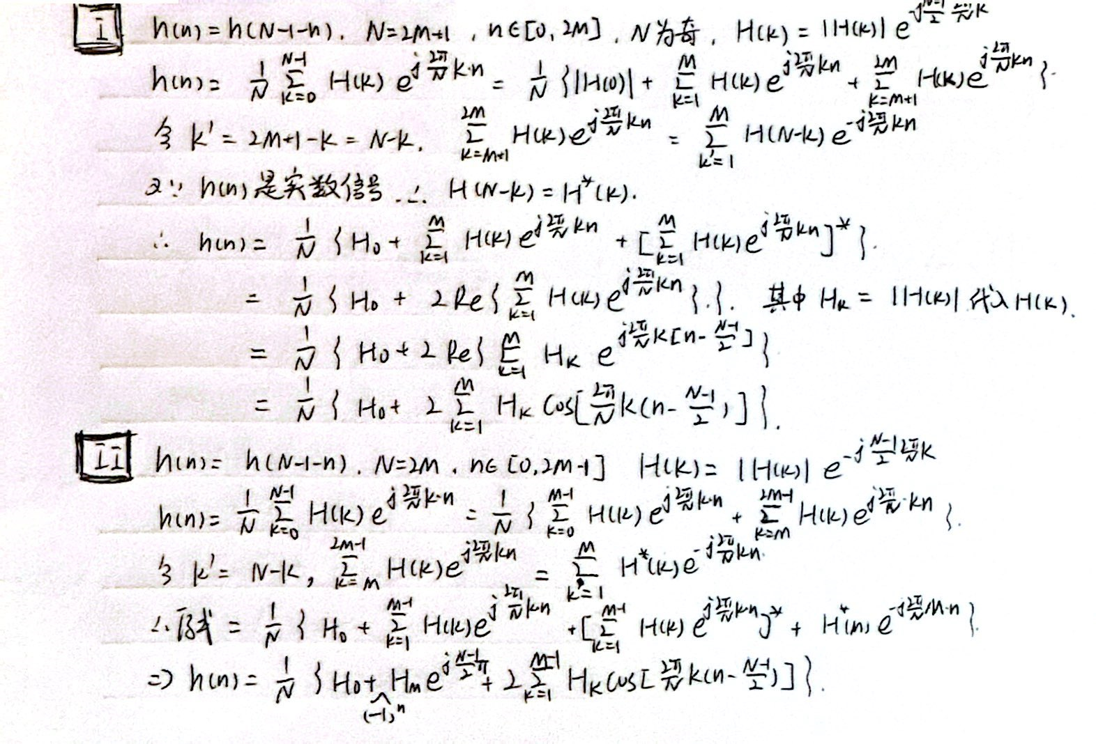 其中\(M = \frac{N-1}{2}, n=0,1,\ldots,N-1\),用到了\(H^*(k)=H(N-k)\)