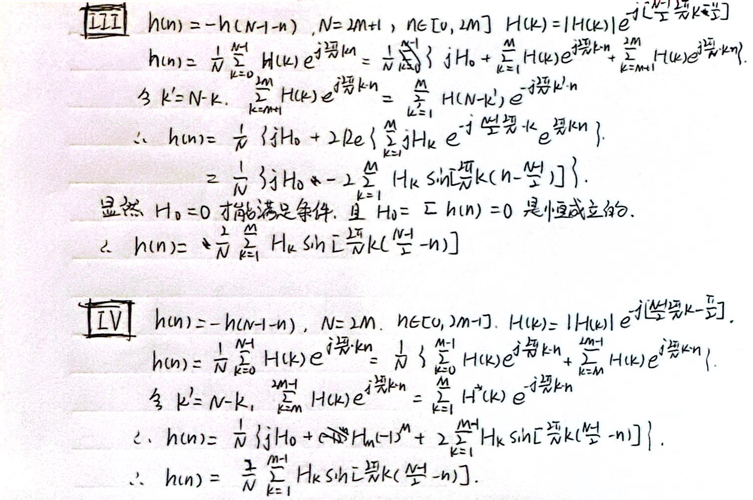 其中当\(h(n)\)奇对称时\(\beta=\frac{\pi}{2}\),偶对称时\(\beta=0\)