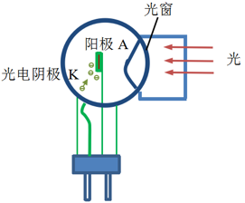 光线照射到金属感光材料时,有电子逸出(外光电效应),在外加电场作用下移动到阳极,在光电管内部产生电子流,在外电路产生电流
