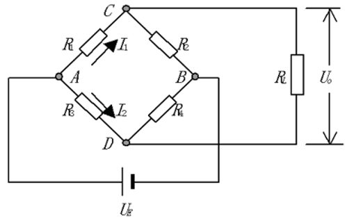 U_0 = U_E \frac{R_1R_4-R_2R_3}{(R_1+R_4)(R_2+R_3)}