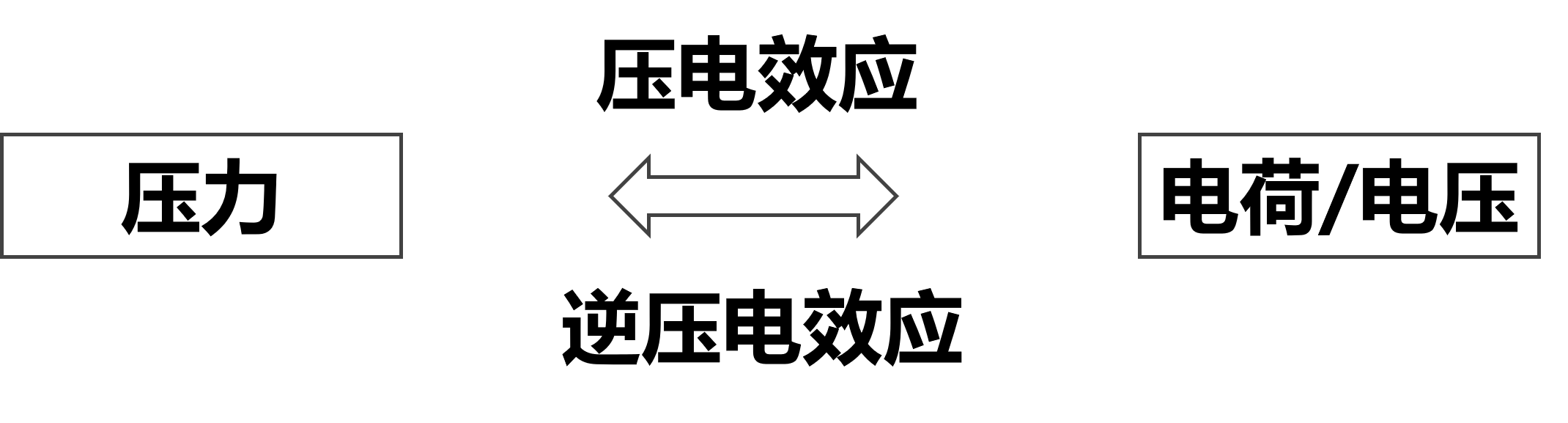 压电效应:一些非中心对称的晶体,在外界压力作用下内部产生极化,在两个表面上产生等量异种电荷;外力消失后,电荷中和;电荷量大小正比于外力大小