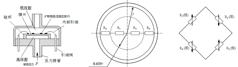\(\frac{d\rho}{\rho}=\pi_l\sigma=\pi_lE\varepsilon\),其中\(\pi_l\)为材料沿某晶向的压阻系数,金属约为0,半导体不为0;\(\sigma\)是应力,\(E\)是杨氏模量