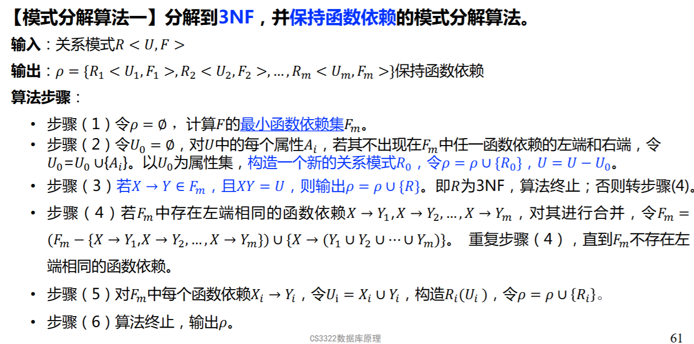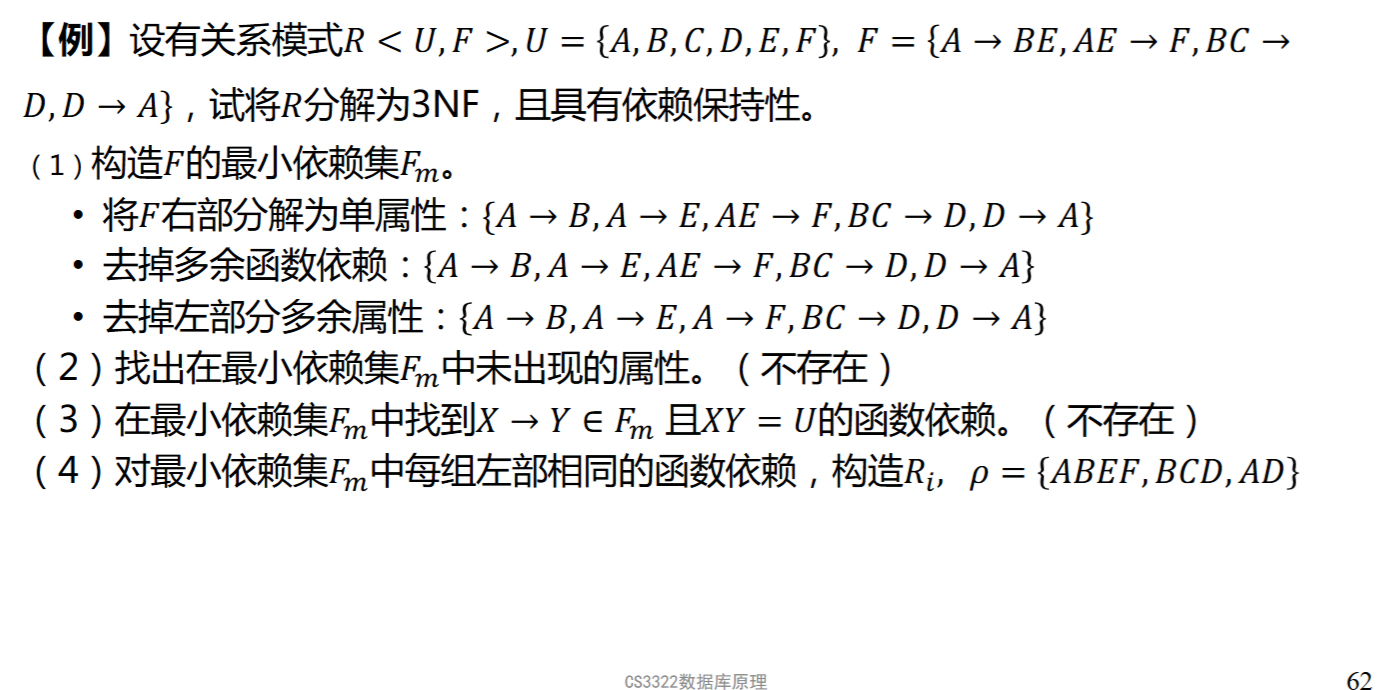 分解到3NF,保持函数依赖