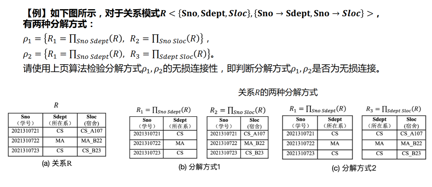 - 数据等价:分解的无损链接性,指分解后的关系可以通过自然连接恢复为原关系