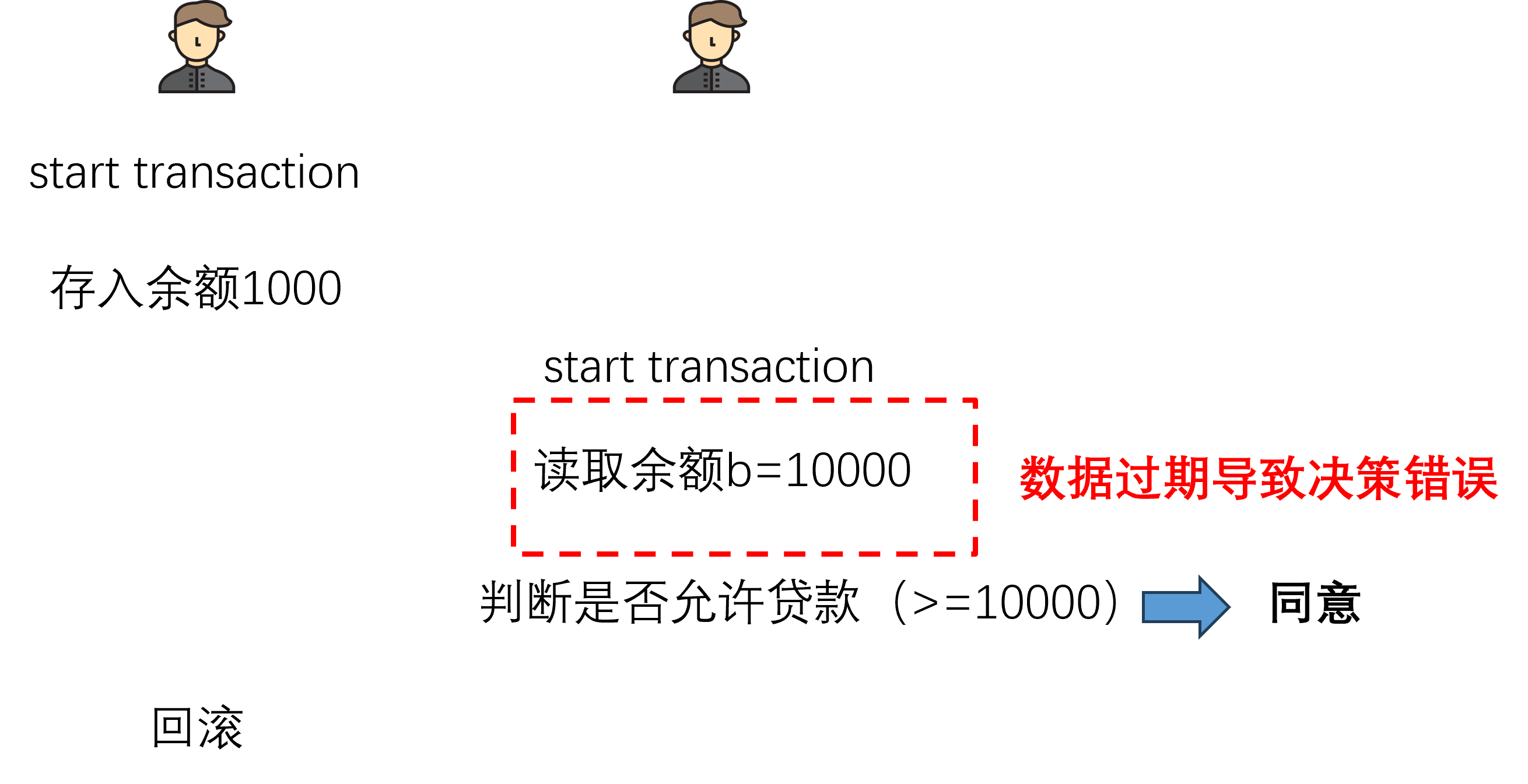 在一个事务加锁的情况下,另一个事务无法操作数据,必须等待加锁事务结束,那么这可能导致