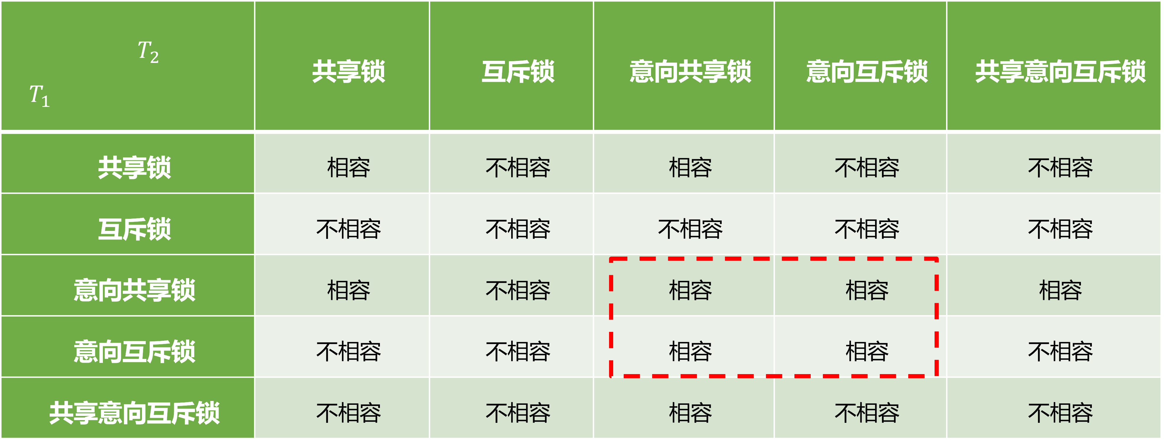 意向共享锁(IS锁):某个数据加共享锁,其祖先加的这个