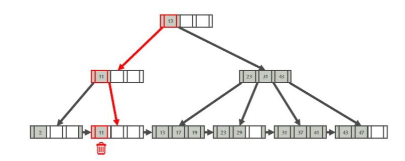 - 向上递归,直到ROOT合并,B+树少一层