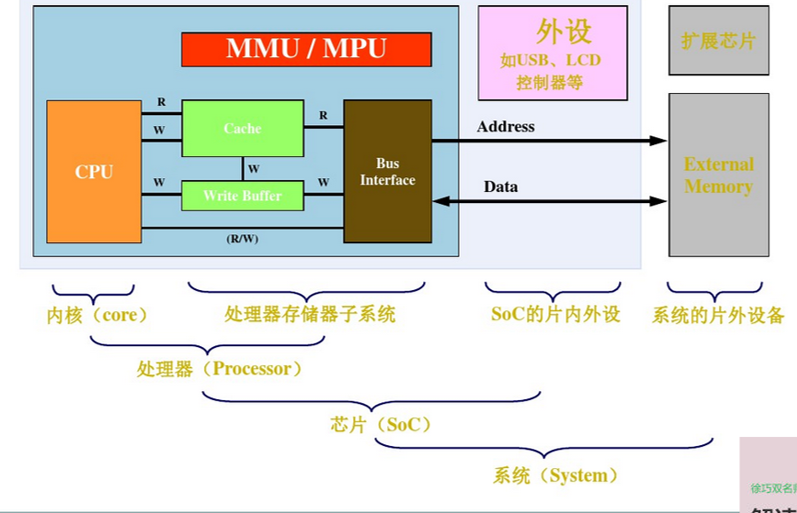 - MPU,Microprocessor Unit,微处理器:高性能处理器,需要外接外设