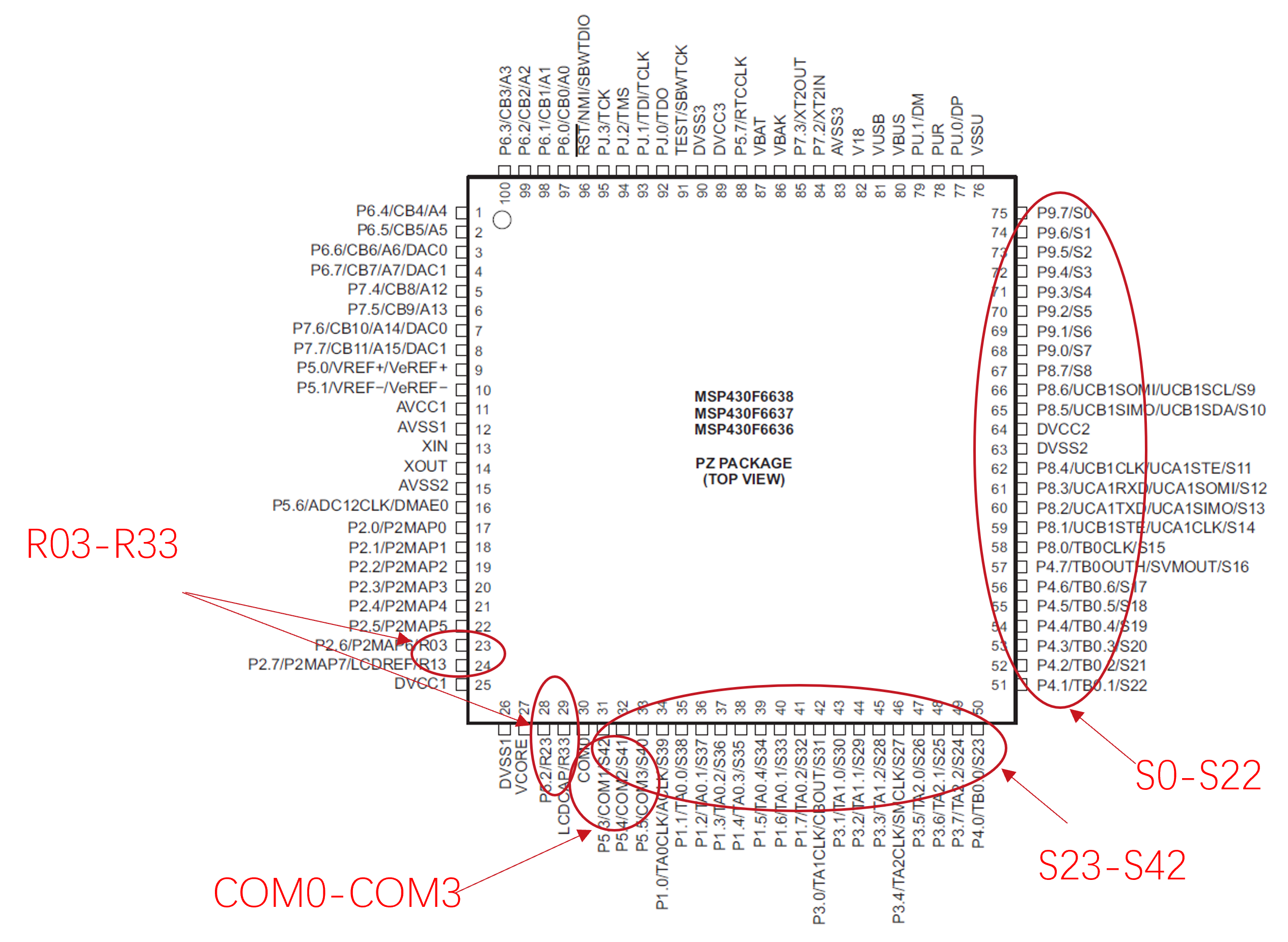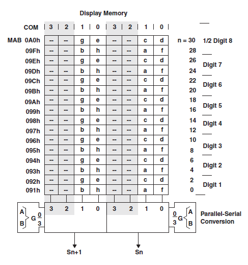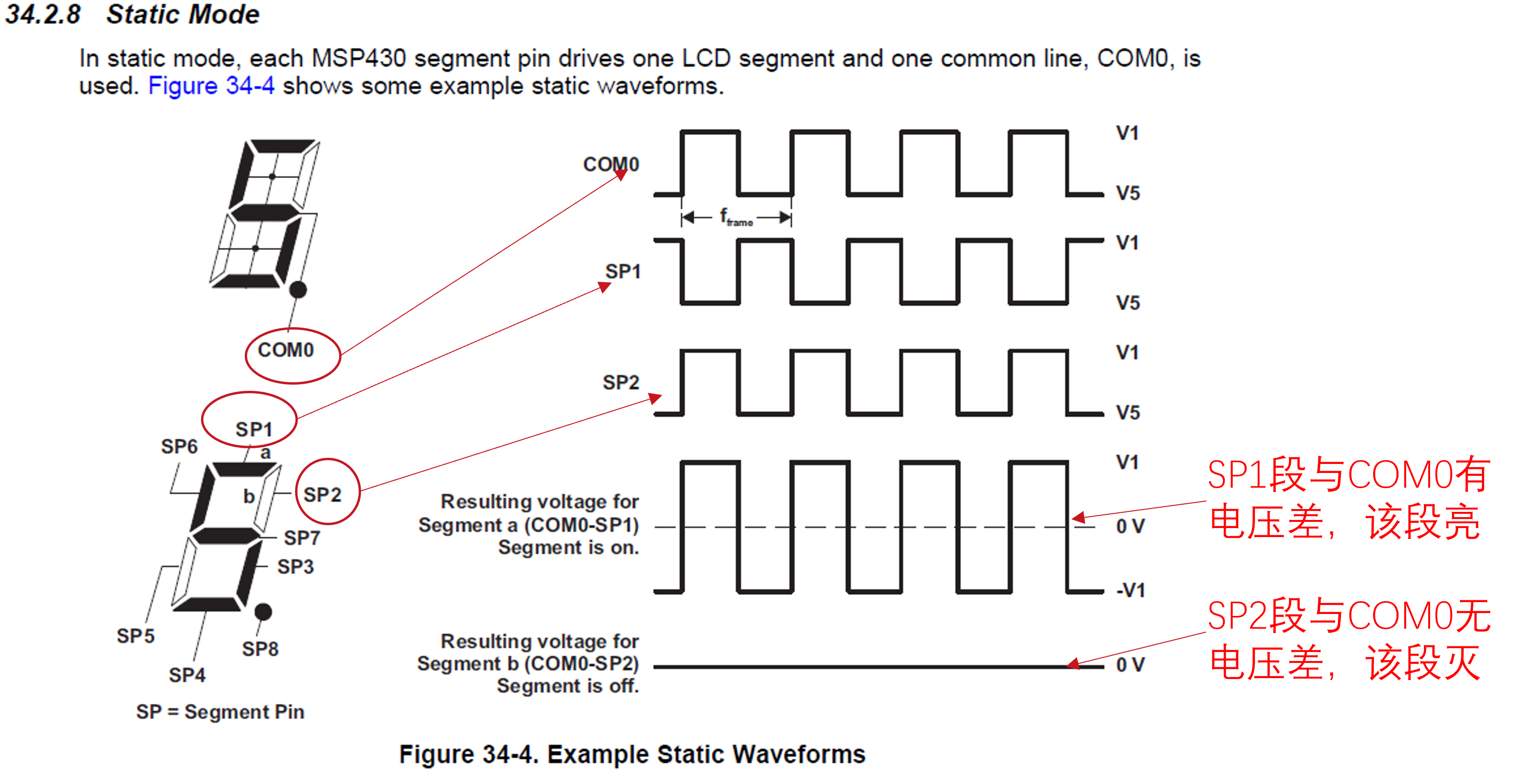 显示原理与51不同,在COM0模式,使用时钟信号与LCD段电压差来显示