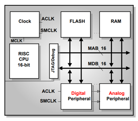 - 模拟比较器A,Timer_A/B,10/12bit ADC