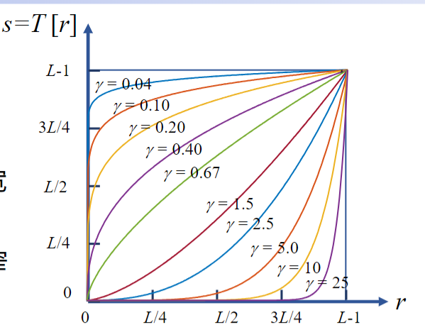 也称伽马变换;γ>1,压缩低灰度区;γ<1,扩展低灰度区