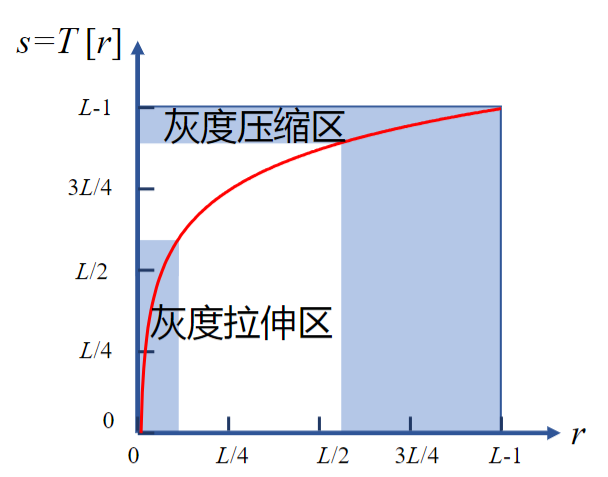 低灰度区:拉伸;高灰度区:压缩