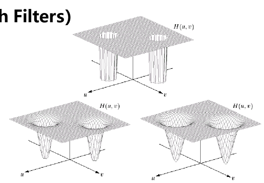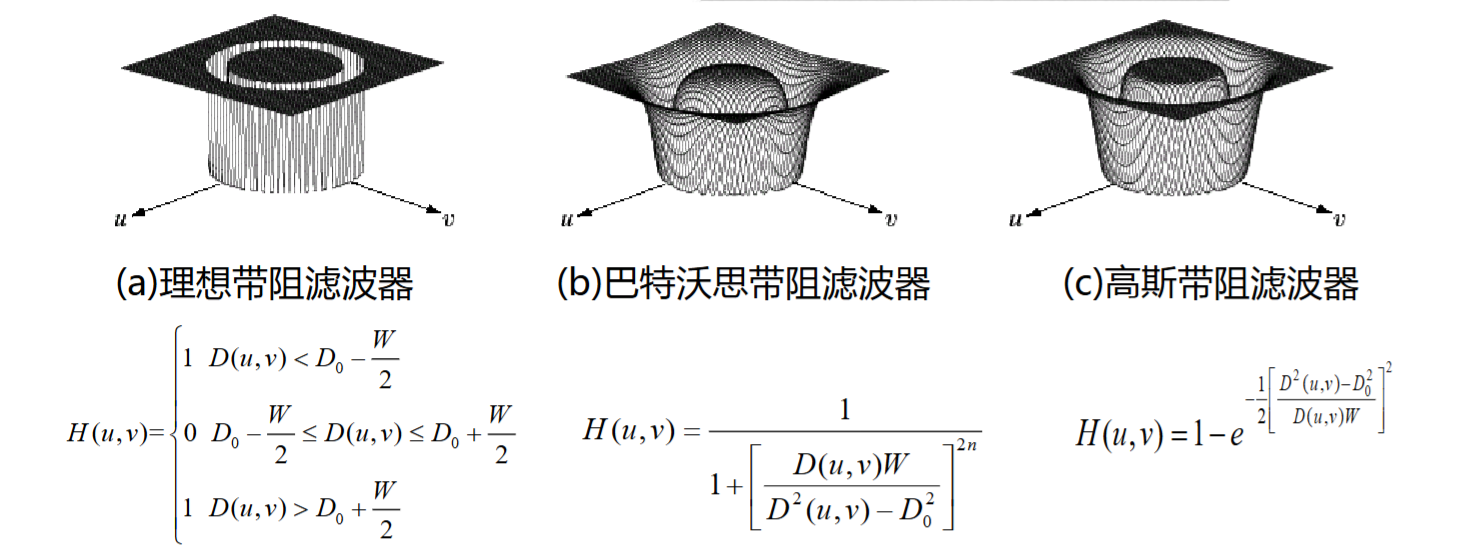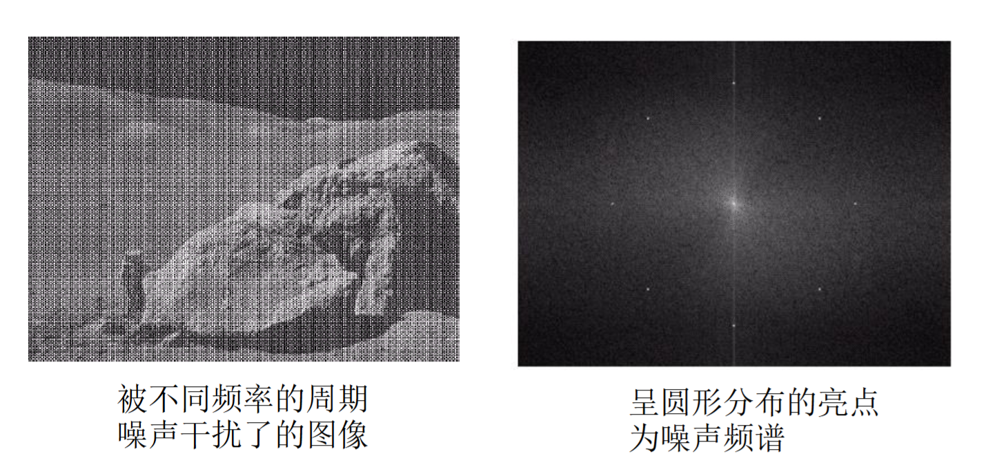 由于周期噪声在频域内就是几个离散的点,可以使用带阻滤波器进行过滤