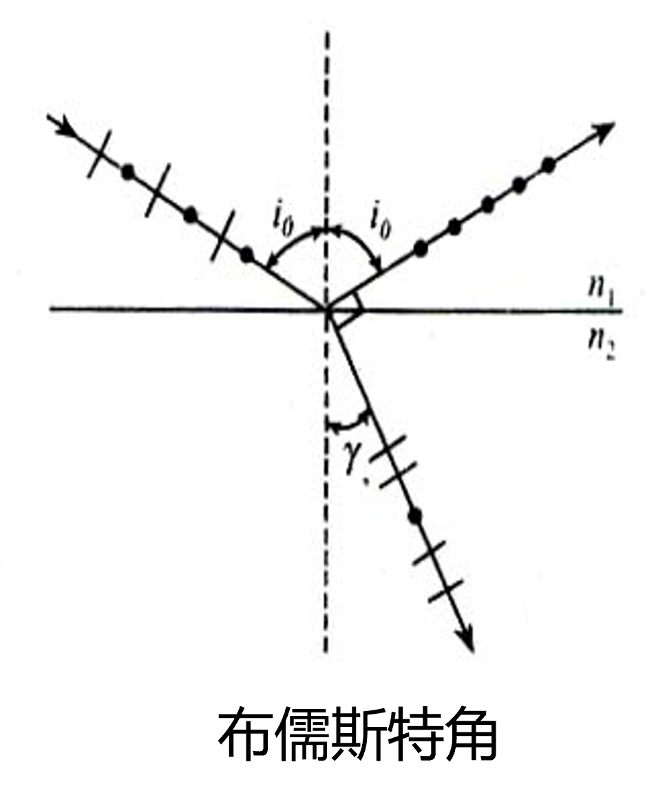 此时有\(n_1\sin{i_0}=n_2\sin{\gamma}=n_2\cos{i_0}\),即\(\tan{i_0}=\frac{n_2}{n_1}\)