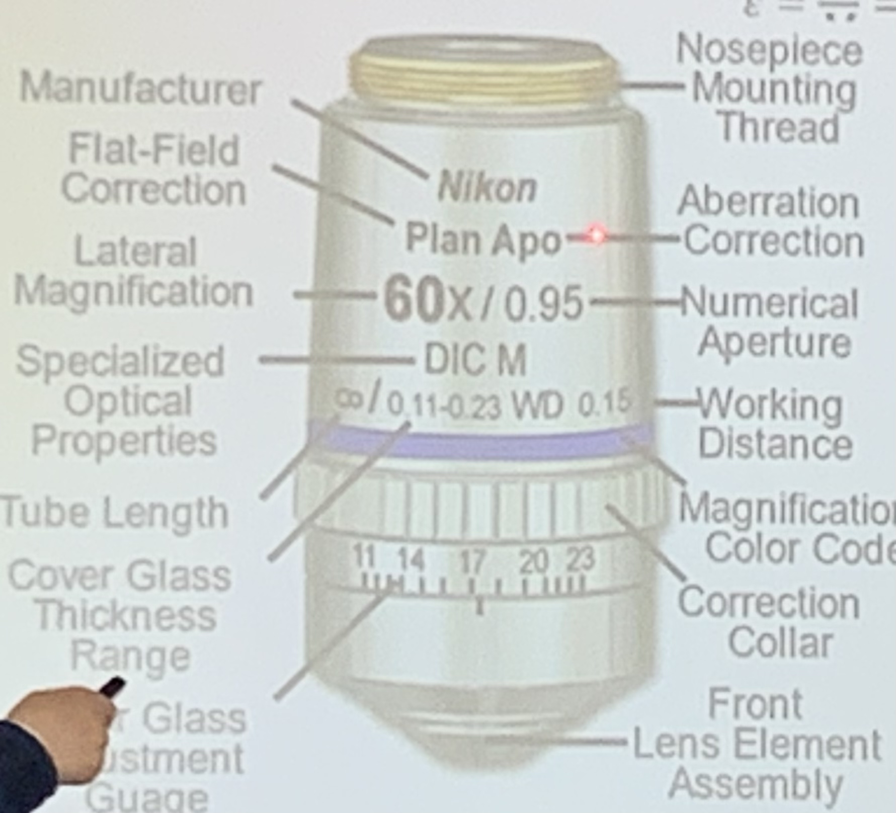 再利用\(h'=r_0=1.22\frac{\lambda l}{d n'}\),注意波长变化,当恰好能分辨时,有\(h=\frac{n'\sin{u'}}{n\sin{u}}\cdot\frac{1.22\lambda l}{d n'}\),当在镜片边缘时由于l>>d,\(\sin{u'}_{\max}=\frac{d}{2l}\)