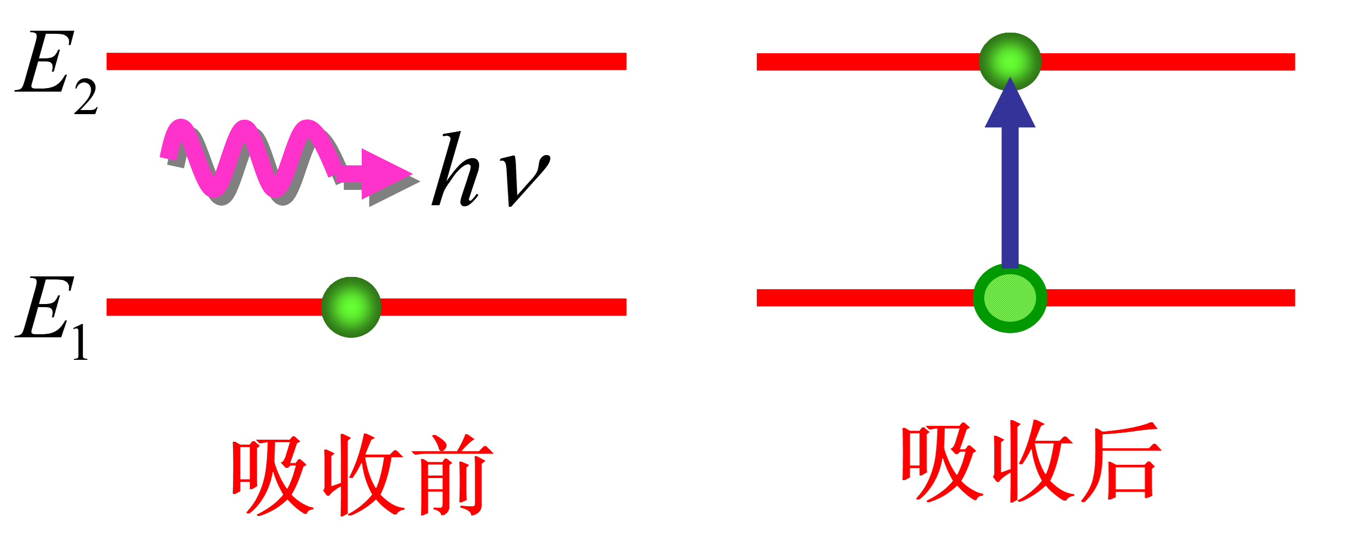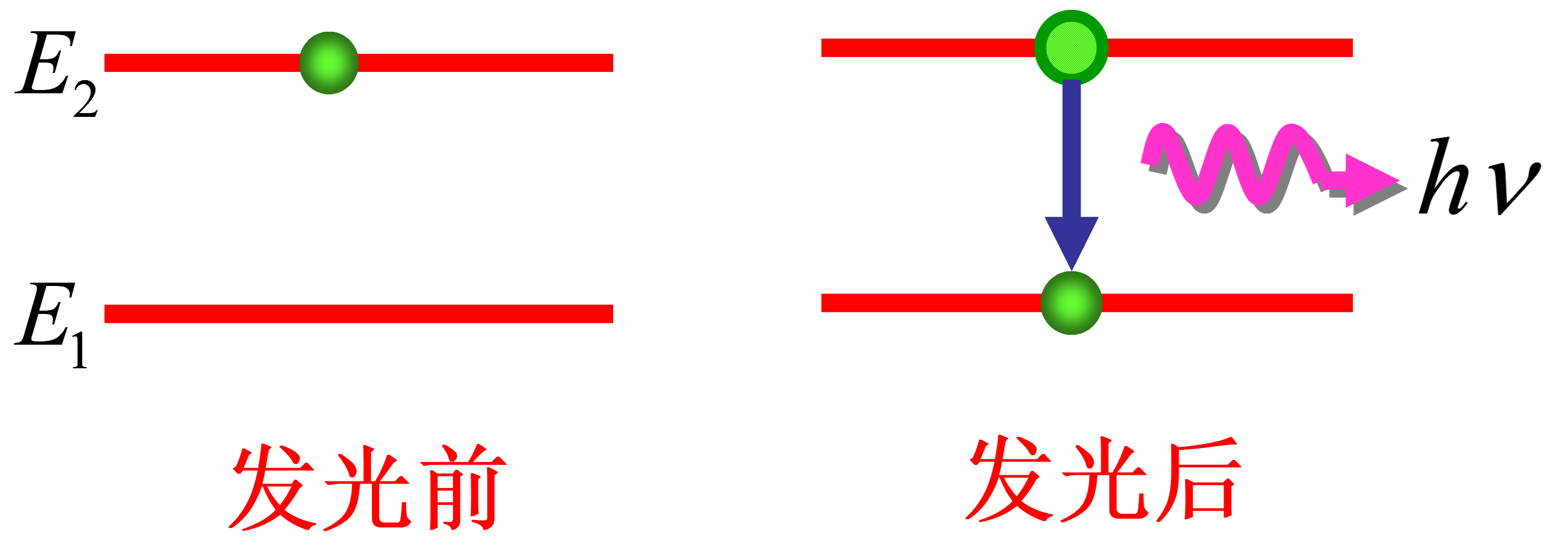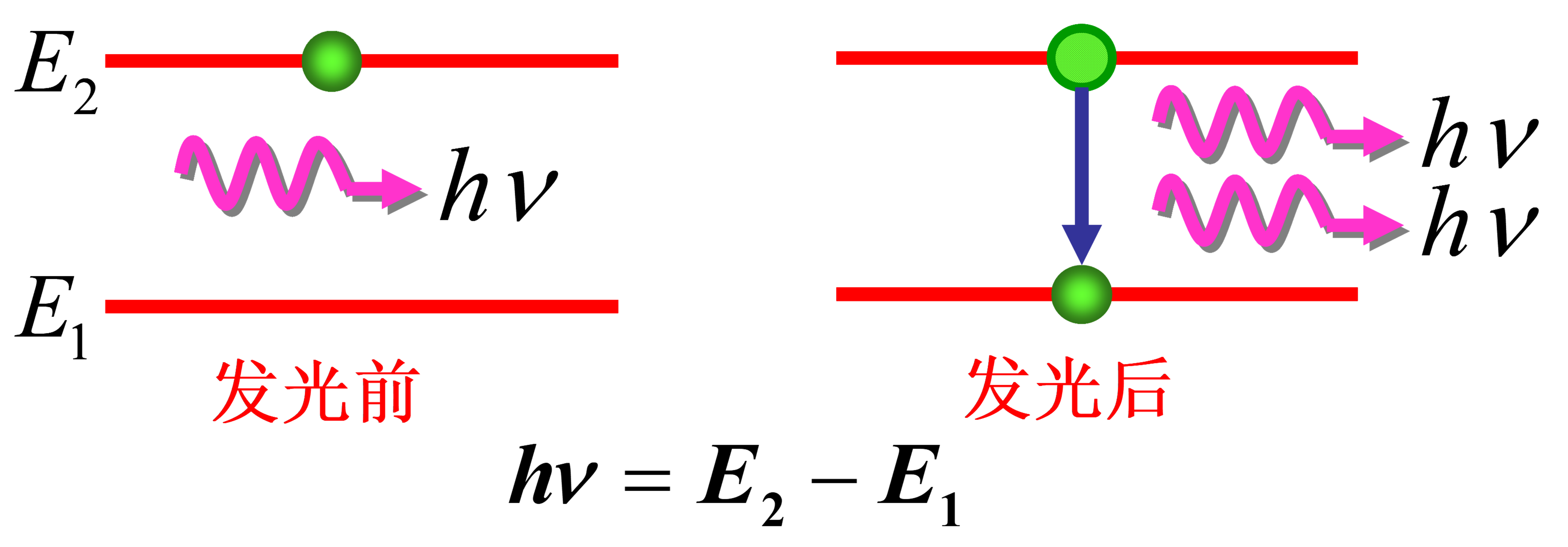 高能级的电子,在外来光子的激发下,向低能级跃迁而发光(进1出2)