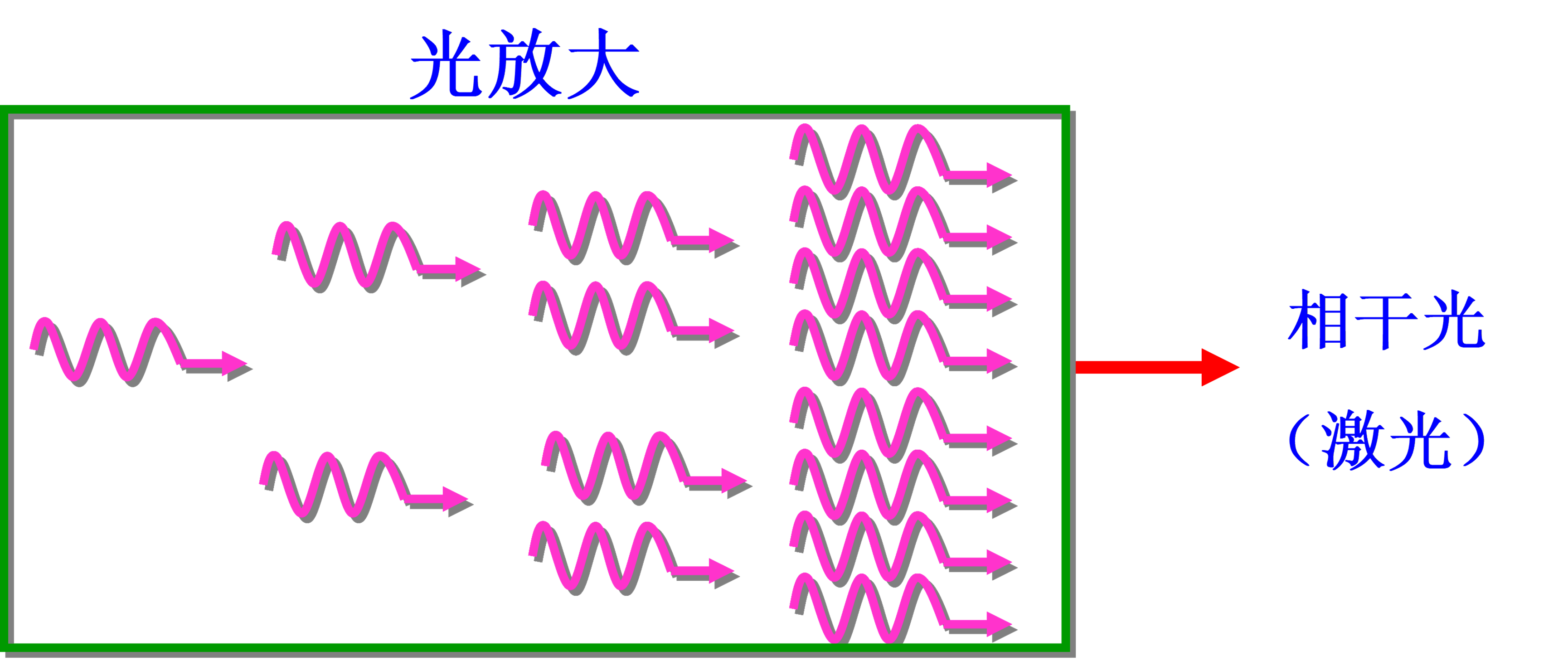 受激产生的光子完全是入射光子的copy,二者频率,相位,波矢,偏振完全一致,有相同的光波模式(激光的相干性强)