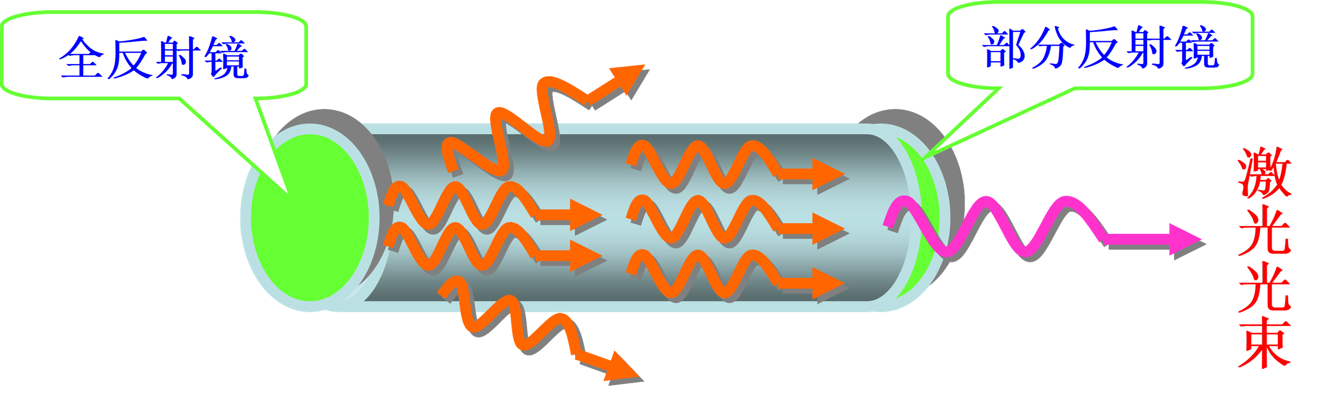 但是谐振腔不可能做的很长,使用反射镜面来增加光程,来回来回中受激光子就变多了