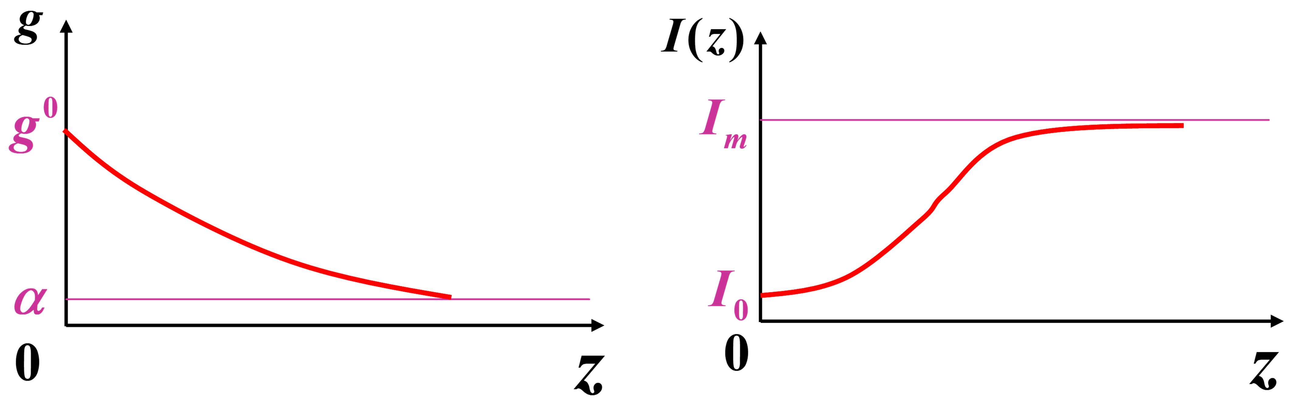 当满足上述条件时,无论初始的光强多小,都能形成\(I_m\)的光7.4 激光器的基本组成和分类
