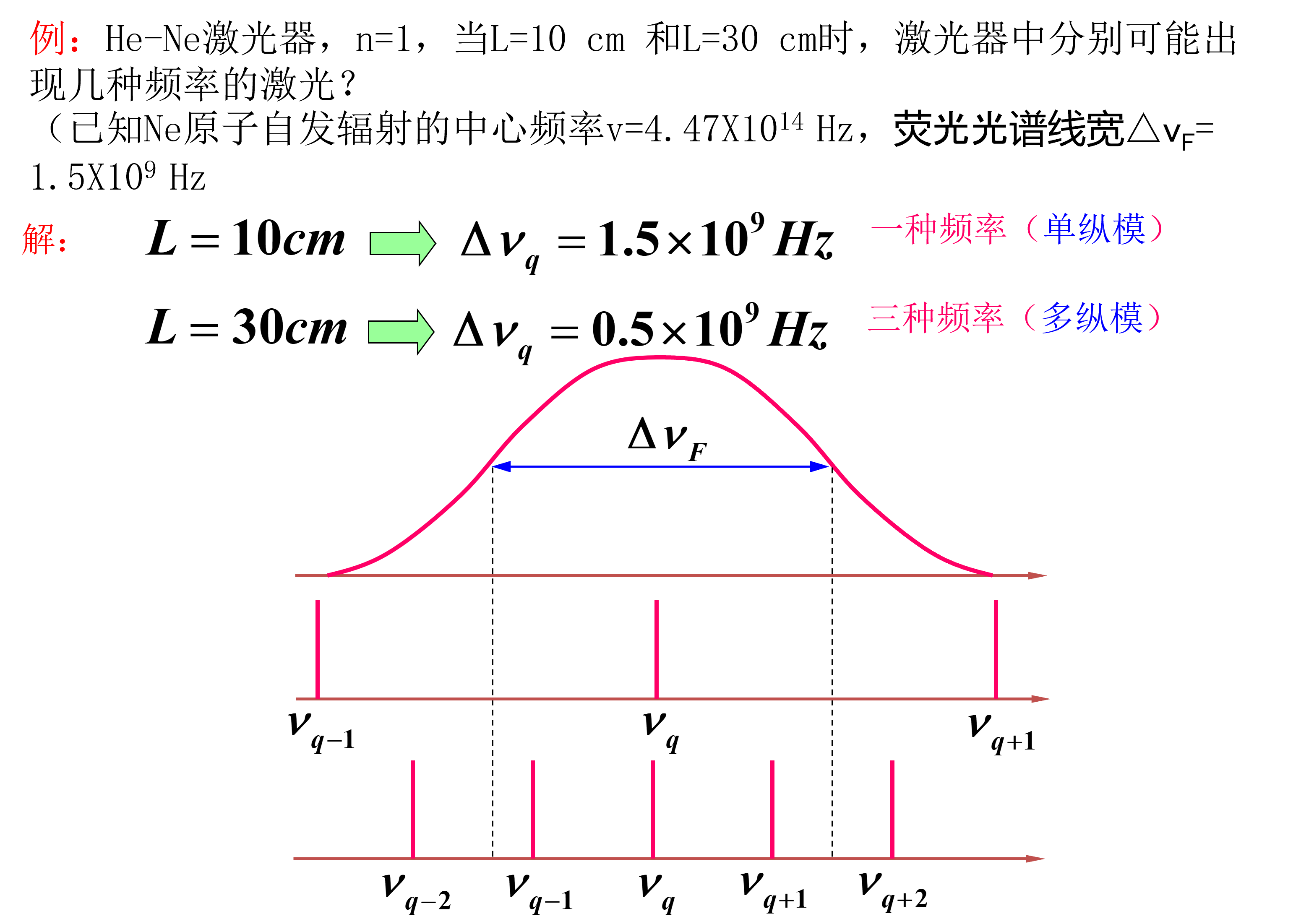纵模间隔:\(\Delta\nu=\frac{c}{2nl}\)