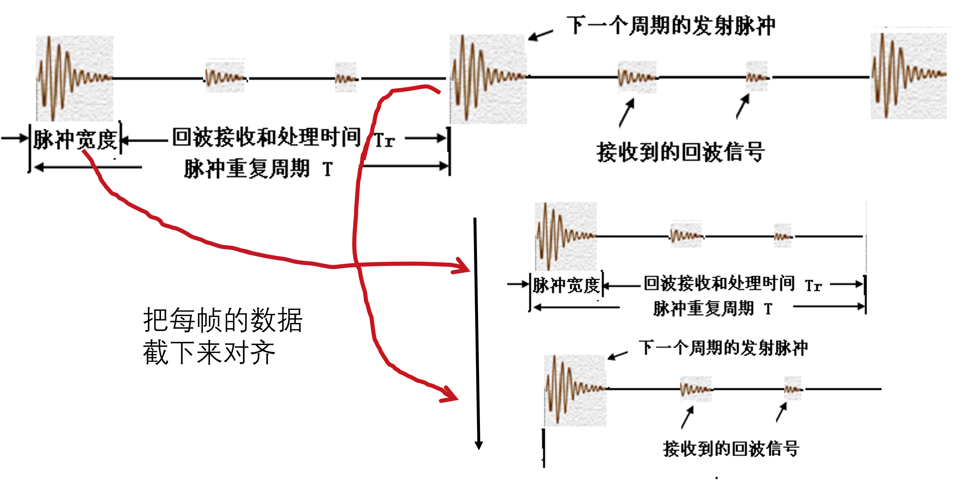 将每一个周期对齐,在平移换能器时,这样操作可以显示2D信息