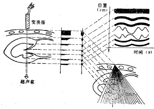 基本原理与A超类似,将回波波幅转化为点的亮度,在时间上移动