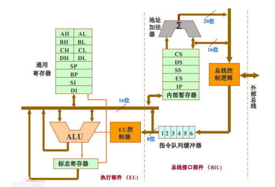 其中EU(Execution Unit)和BIU(Bus Interface Unit)
