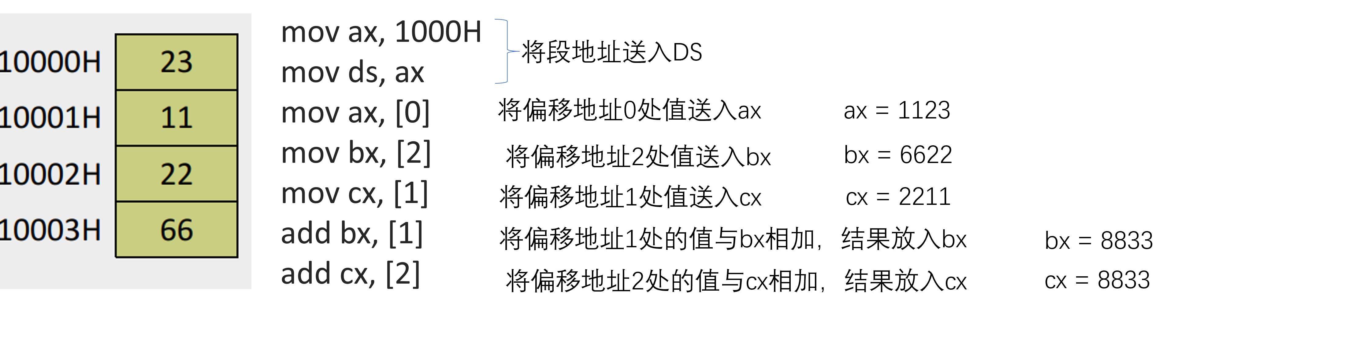 | mov 寄存器, 内存单元 | mov ax, [0] | add 寄存器, 内存单元 | add ax, [0] |